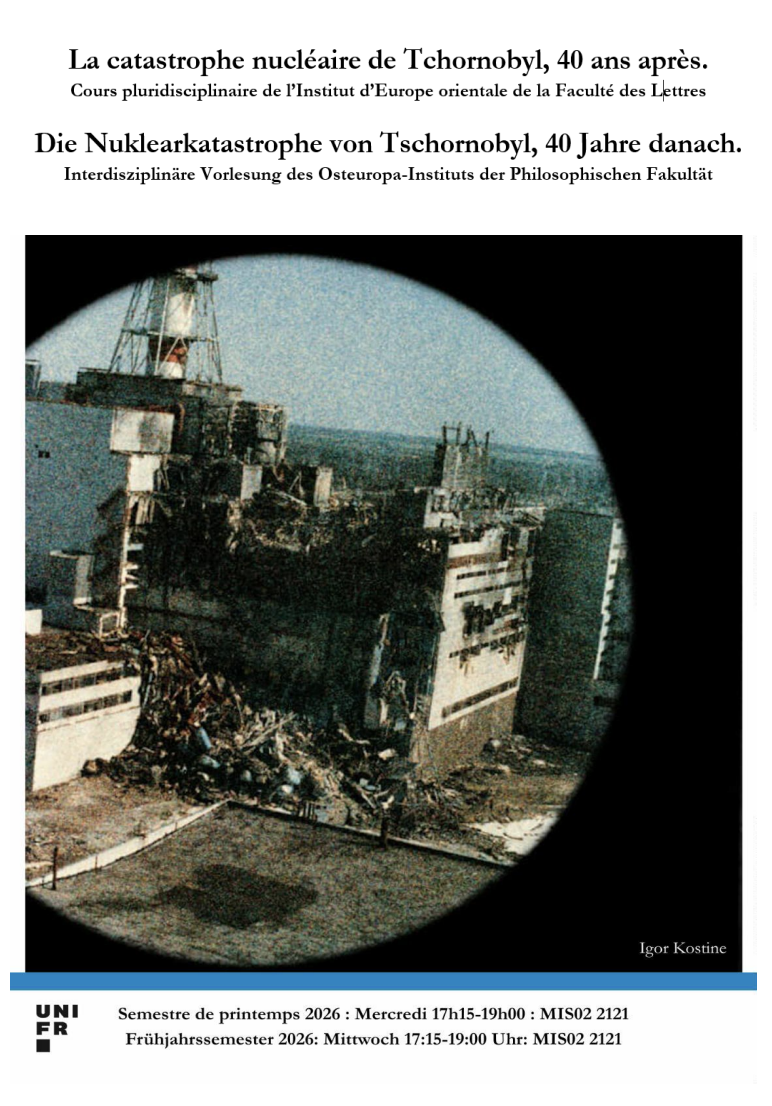 Ce cours trilingue (français–allemand–anglais) revient sur la catastrophe nucléaire de Tchornobyl, quarante ans après son déclenchement, à travers des perspectives historiques, politiques, philosophiques, littéraires, géographiques, environnementales et artistiques.